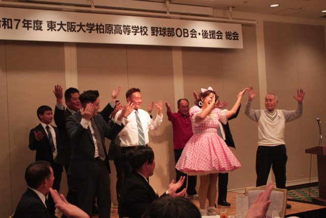 人気のものまねや自身の曲の披露など会場は大盛り上がりで、「村上理事長はじめ野球部監督などOBのみなさんと思い出にふれ楽しい時間でした」とコメントも頂きました。